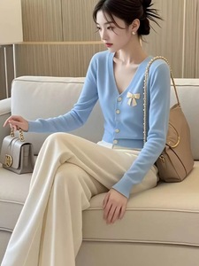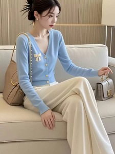 韩版甜美风针织开衫新款长袖毛衣法式慵懒宽松上衣显瘦氛围感套装