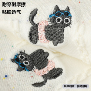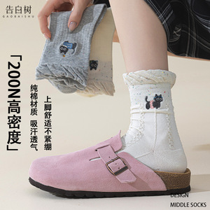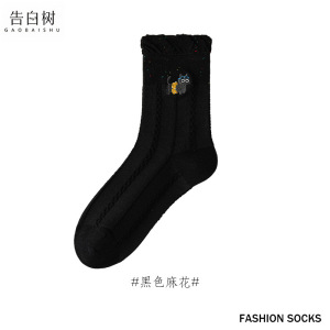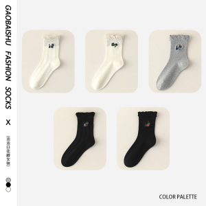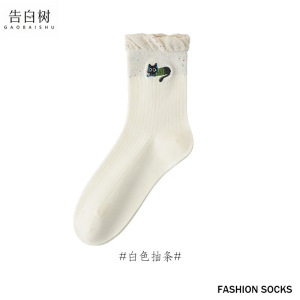 袜子女秋冬猫咪卡通刺绣点子纱泡泡口花边中筒袜子日系ins风女袜