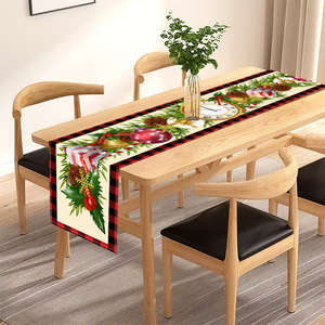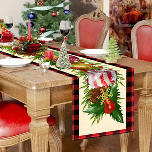 新款圣诞印花桌旗亚马逊跨境圣诞节装饰餐桌台布居家客厅厨房桌布