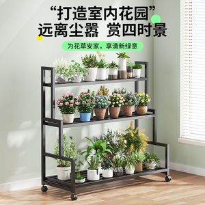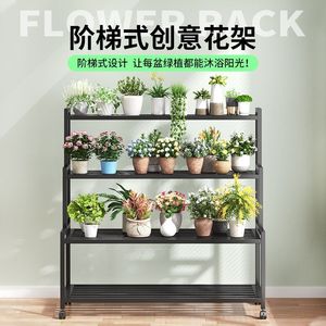 花架置物架阳台花架子客厅落地式铁艺实木质多层植物多肉花盆托架