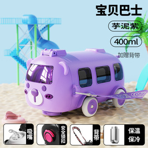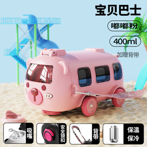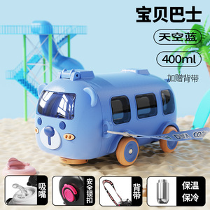 宝宝巴士不锈钢水杯卡通高颜值巴士保温杯学生上学创意吸管杯批发