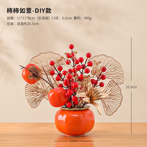 新中式事事如意柿子摆件玄关酒柜电视柜装饰乔迁礼物家居如意