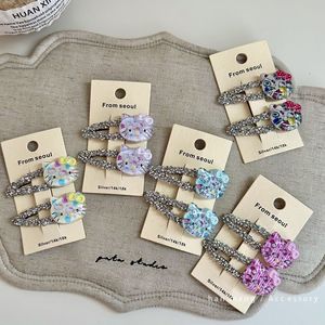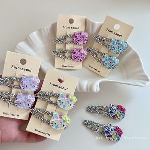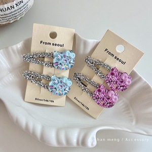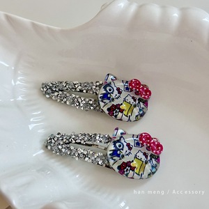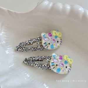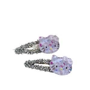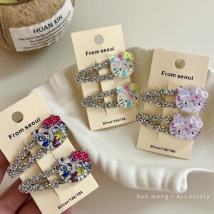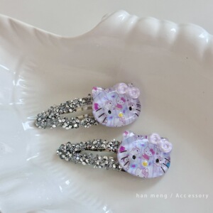 新款可爱透彩小猫银色儿童BB夹发圈对装宝宝发卡bb夹边夹头绳皮筋