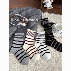 复古长袜中筒袜学院堆堆子代发一件条纹袜子女薄款中筒透气批发