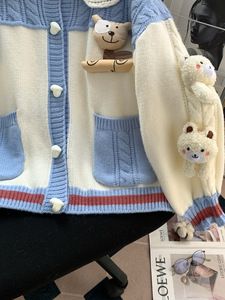 可爱小熊娃娃领毛衣开衫外套女秋冬穿搭宽松慵懒外穿减龄针织上衣