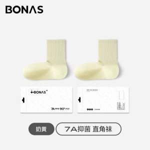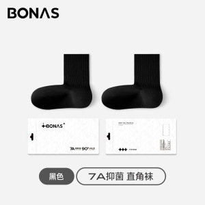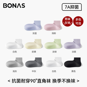 宝娜斯7A抑菌直角袜子女纯棉袜子防臭吸汗四季全棉休闲男士中筒袜
