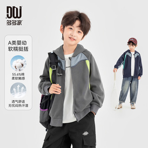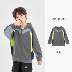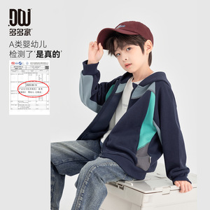 多多家男童外套春秋款儿童百搭上衣连帽休闲中大童华棉针织开衫