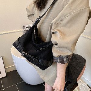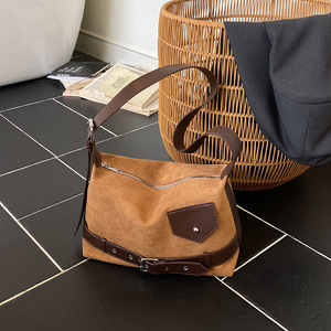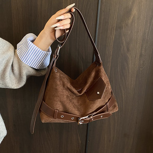 跨境女2025麂皮绒腰带托特包新款大容量斜挎包时尚复古百搭单肩包