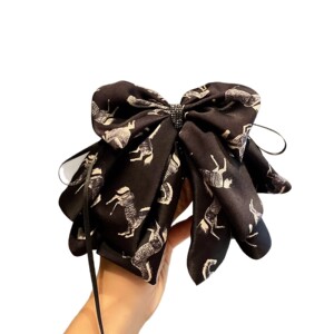 韩版发饰时尚小马印花蝴蝶结多层马尾夹女小众后脑勺盘发马尾夹