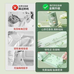 大垃圾袋抽绳式家用免撕手提袋大容量山茶花加厚家居不易破清洁袋