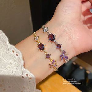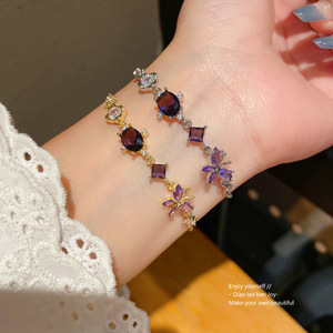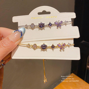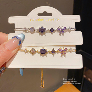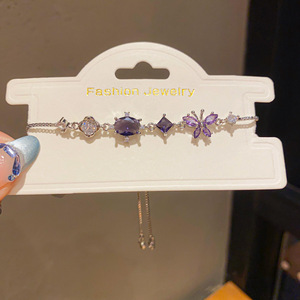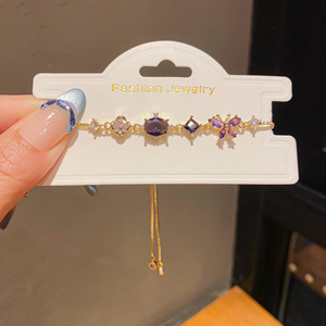 韩系锆石椭圆蝴蝶抽拉式手链复古精致温柔甜美手环轻奢高级感手饰