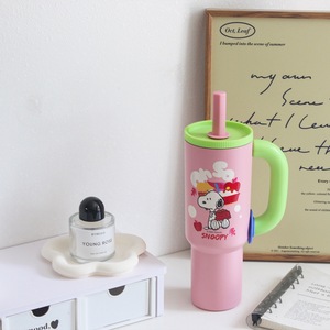 史努比新款不锈钢手柄汽车杯巨无霸多巴胺手柄吸管户外便携冰霸杯