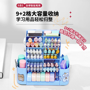 猫太子智能计时旋转笔筒大容量小学生桌面收纳盒多功能自律打卡器