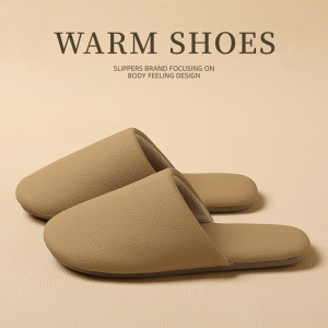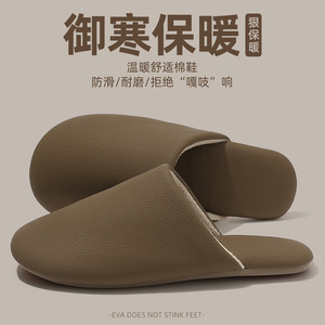 pu棉拖鞋女秋冬季日式室内家居软底防滑毛绒保暖家用棉拖男冬批发