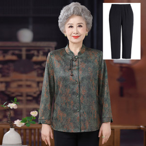 2025新款中老年人春秋装女长袖衬衫上衣服奶奶装中式国风唐装衬衣