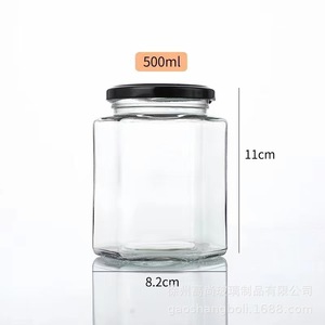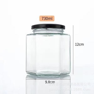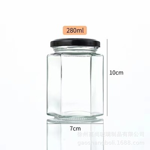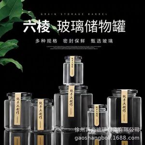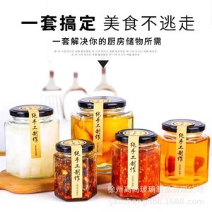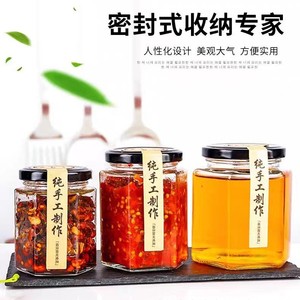 500ml六棱玻璃瓶密封带盖包装瓶子六角蜂蜜燕窝瓶套装辣椒酱菜瓶