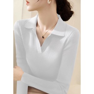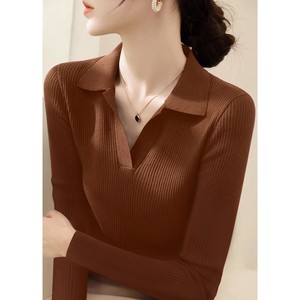 微胖mm高级感POLO领长袖针织衫女秋冬款修身内搭外穿大码打底上衣
