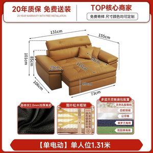 零靠墙电动真皮沙发现代简约小户型客厅可伸缩多功能带头枕沙发床