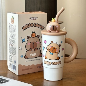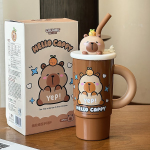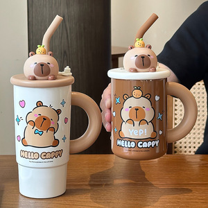 卡皮巴拉水杯女高颜值保温杯办公室茶水分离保冷咖啡带把手冰霸杯