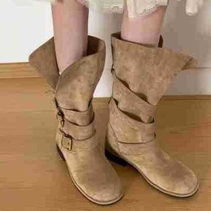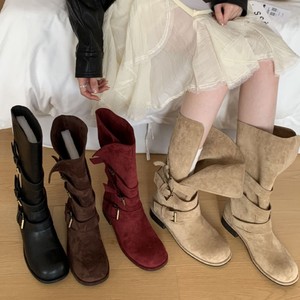 软底时尚长筒靴女2025新款不过膝绒面长靴女款显瘦高筒骑士靴子潮