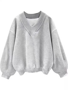 欧美跨境2025秋季新款多色卫衣女装时尚韩版休闲宽松百搭V领上衣