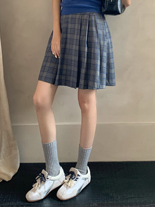 衣尔衫 英伦街道 格纹复古百褶裙半松紧腰半身裙女短裙气质0626