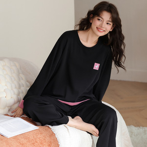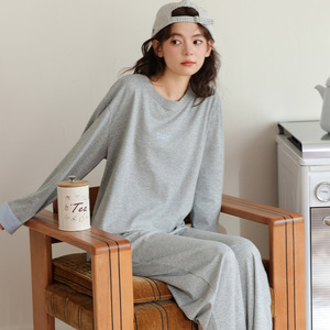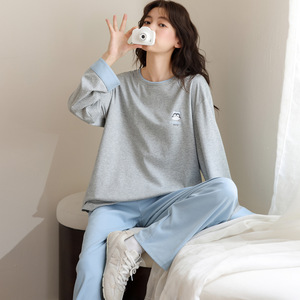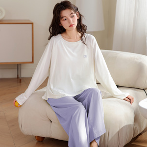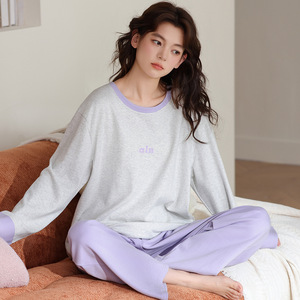睡衣女纯棉带胸垫春秋季薄款2025年新款宽松青少女套装休闲家居服