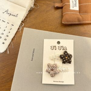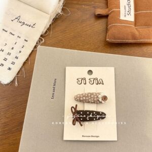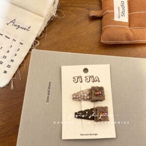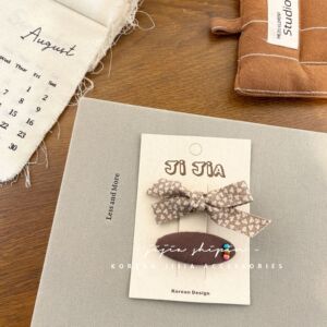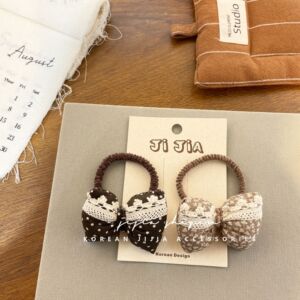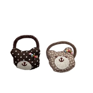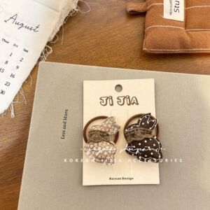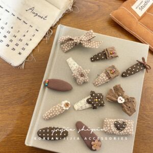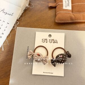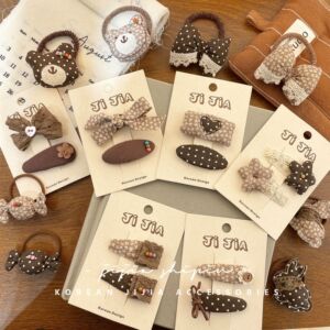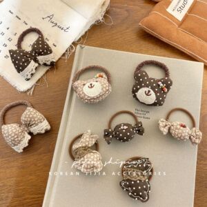 新款韩系早秋咖色波点小熊发绳甜美爱心蝴蝶结发夹布艺手工发饰