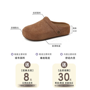 绒面百搭女生包头拖鞋夏季时尚复古简约勃肯鞋休闲厚底增高半拖鞋