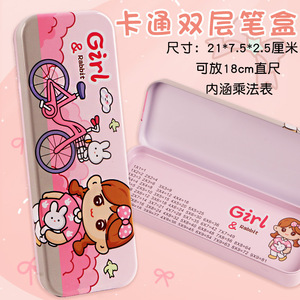 小学生铁皮文具盒双层文具盒可爱卡通男生女生铅笔盒带乘法口诀表