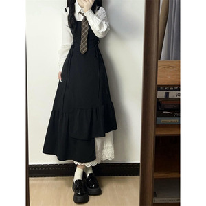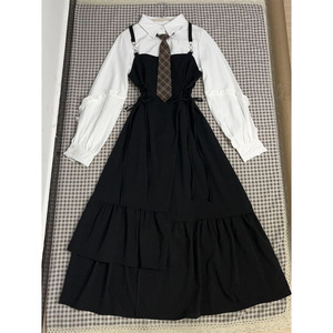 学院风高级感POLO领长袖衬衫小个子连衣裙2025新款收腰背带裙套装
