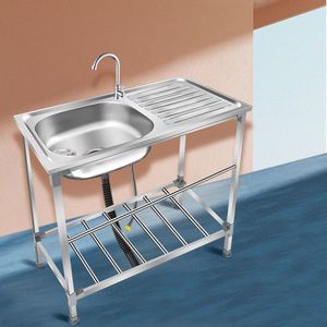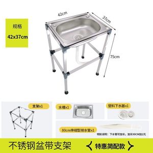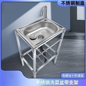 厨房简易不锈钢洗菜单槽支架加厚洗碗池一体洗手盆水池家用水槽