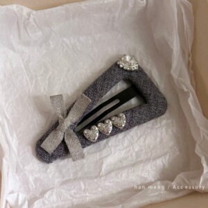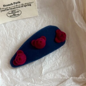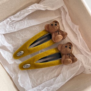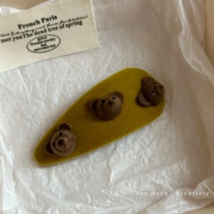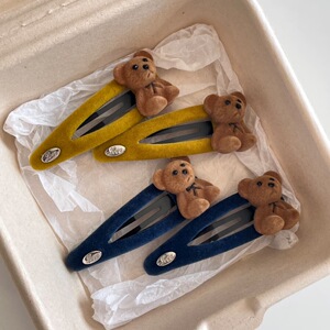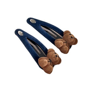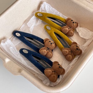 韩国新款小众植绒银标小熊水滴bb夹刘海侧边夹前额碎发夹头饰女