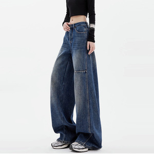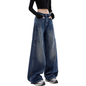 美式潮流古阔腿牛仔裤女春秋季新款设计感宽松拖地牛仔裤子潮