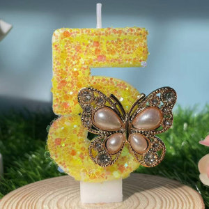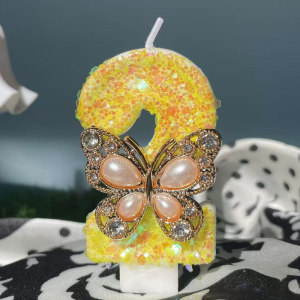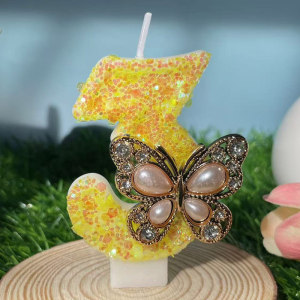 跨境爆款珍珠蝴蝶黄色手工数字蜡烛0-9周岁生日派对装饰盒装蜡烛