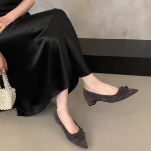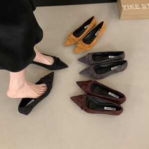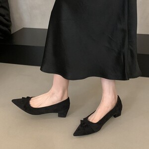 浅口气质尖头单鞋女2025早秋新款淑女绒面晚风跟鞋百搭休闲鞋女鞋