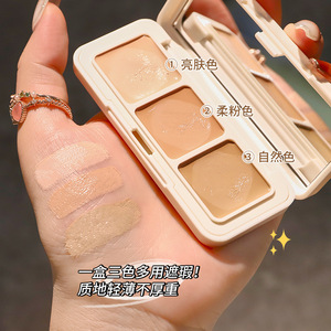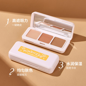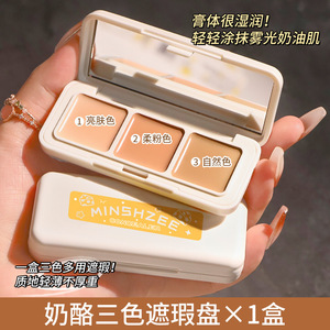 茗希芝奶酪三色遮瑕膏遮盖斑点脸部痘痘印干皮油皮修饰遮暇盘跨境