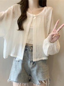 夏季薄款防晒雪纺衬衫2025新款大码胖mm吊带外搭白色衬衣法式上衣