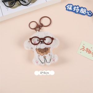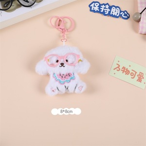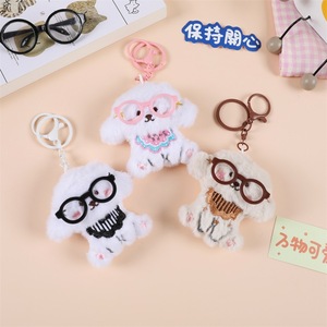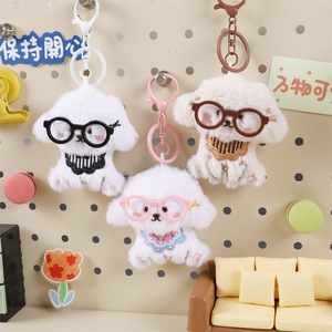 新款眼镜小狗卡通毛绒吱吱叫书包挂件钥匙扣diy胸针发饰材料批发