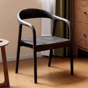 北欧实木餐椅家用靠背椅胡桃舒美特椅简约扶手椅子复古洽谈书桌椅