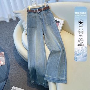 浅色阔腿牛仔裤女夏薄款2025新款今年流行小个子宽松直筒裤子