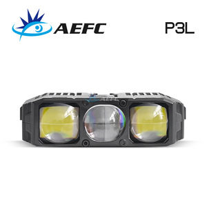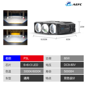 新款三眼透镜大功率80W双色小钢炮中网格栅灯汽车摩托车通用9-80V