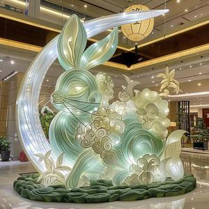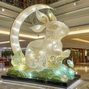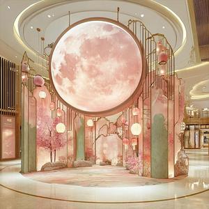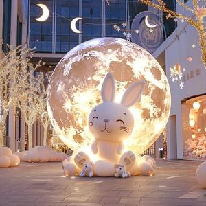 中秋节美陈摆件氛围装饰商场景区布置月亮背景拍照打卡发光道具猫