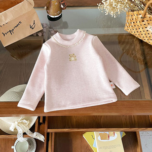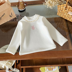 【现货】QY259701女童加绒T恤2025秋冬蕾丝边卡通兔子加绒长袖T恤