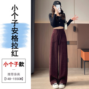 红色高级感灯芯绒窄版雪尼尔西装阔腿裤秋冬高腰显瘦休闲裤直筒裤