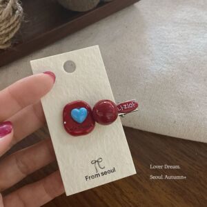 韩国新款红色字母爱心鸭嘴夹发夹 可爱时尚刘海夹侧边夹儿童发饰