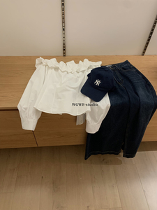 WGWE秋装法式简约一字肩衬衫设计感露肩收腰显瘦长袖上衣女W6889