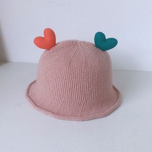 爱心针织盆帽-粉红色
