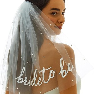 欧美Bride to Be珍珠头纱婚礼派对新娘烫字双层头纱单身派对头纱