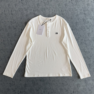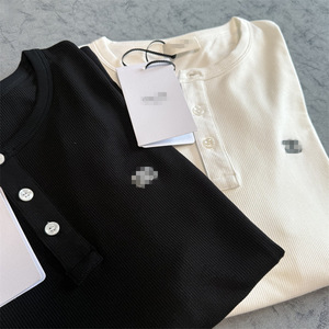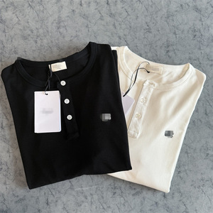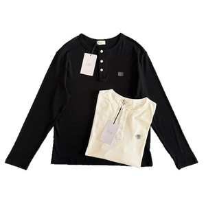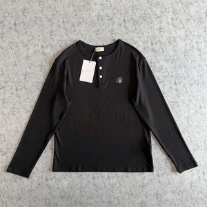 金泰亨明星同款 CE凯旋门小标刺绣半开胸打底衫复古亨利领长袖T恤